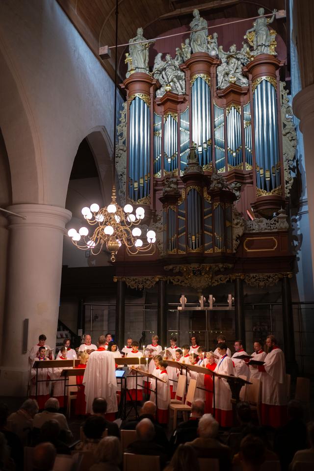 Roder Jongenskoor in het sfeervolle Witte Kerkje in Haren. De koorleden, jongens en
